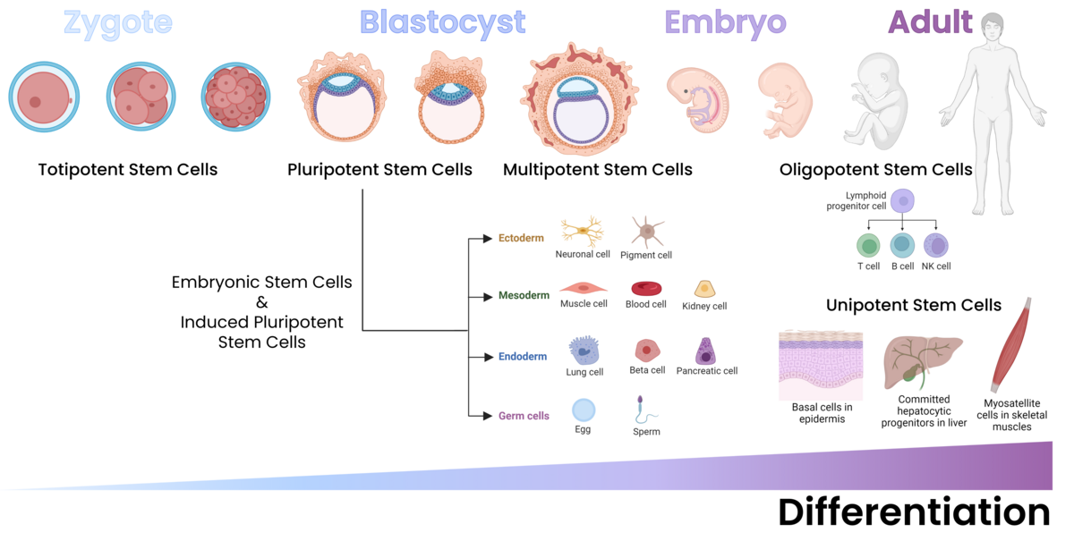 Stem cell biology is a tightly regulated process that begins during embryonic development and is present in the body in various forms through adulthood. Stem cells have the unique property of being self-renewing and either multipotent or pluripotent. Most cells in an organism are terminally differentiated, meaning that they no longer proliferate. On the other hand, pluripotent stem cells can differentiate into any tissue type (or divide to produce more stem cells, i.e., their self-renewing characteristic). Multipotent stem cells are adult stem cells that can differentiate into the terminally differentiated cells of a specific organ/tissue in which they reside.