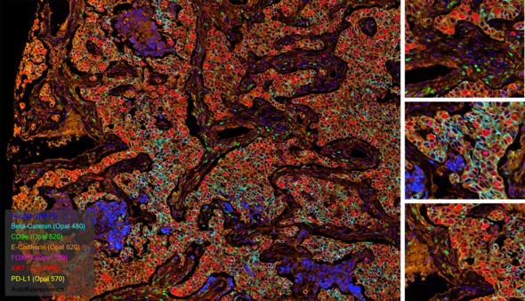 At Fortis, we use TSA on slides produced for the Akoya PhenoImager™ HT using Opal™ reagents to generate up to 6-plex images.